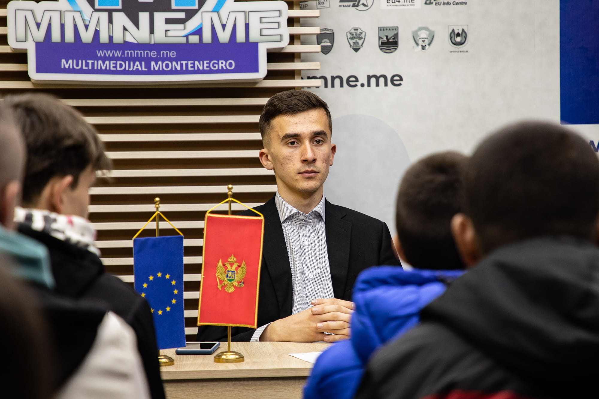 Osim što se razgovaralo o vrijednostima Evropske unije I svim benefitima koje pruža njenim članicama ali I državama koje su u procesu pregovaranja, Nikola Purić prezentovao je mladima jedan dio pomoći koje je Crna Gora dobila od Evropske Unije.