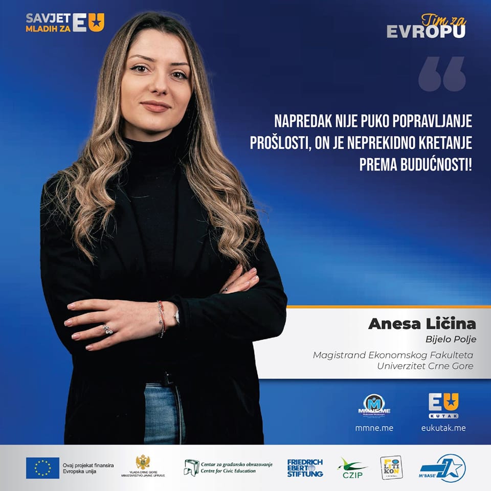 “Mladi ljudi su snaga koja najviše treba da se zalaže za ulazak u EU, jer bi ulaskom Crne Gore u EU mladi i nezaposleni bili na najvećem dobitku. Zahvaljujući Evropskoj Uniji svi mogu iskoristiti pravo na slobodu kretanja među članicama, kao i osposobljavanje i studiranje u bilo kojoj članici EU-a, pod istim uslovima kao i njeni državljani. Tržište rada na nivou EU pruža mnoge prilike i trebamo ih iskoristiti. Napredak nije puko popravljanje prošlosti, on je neprekidno kretanje prema budućnosti! Sami možemo da uradimo malo, zajedno možemo mnogo više!”