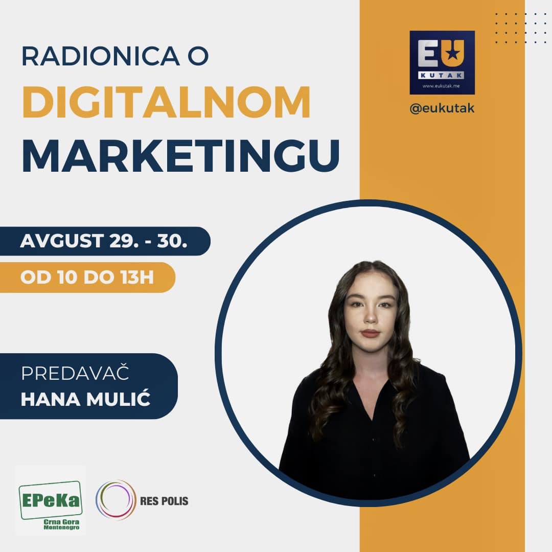 Predavač na radionici je Hana Mulić koja je prisustvovala obukama o digitalnom marketingu u Italiji i Novom Sadu i učila od stručnjaka iz ove oblasti.