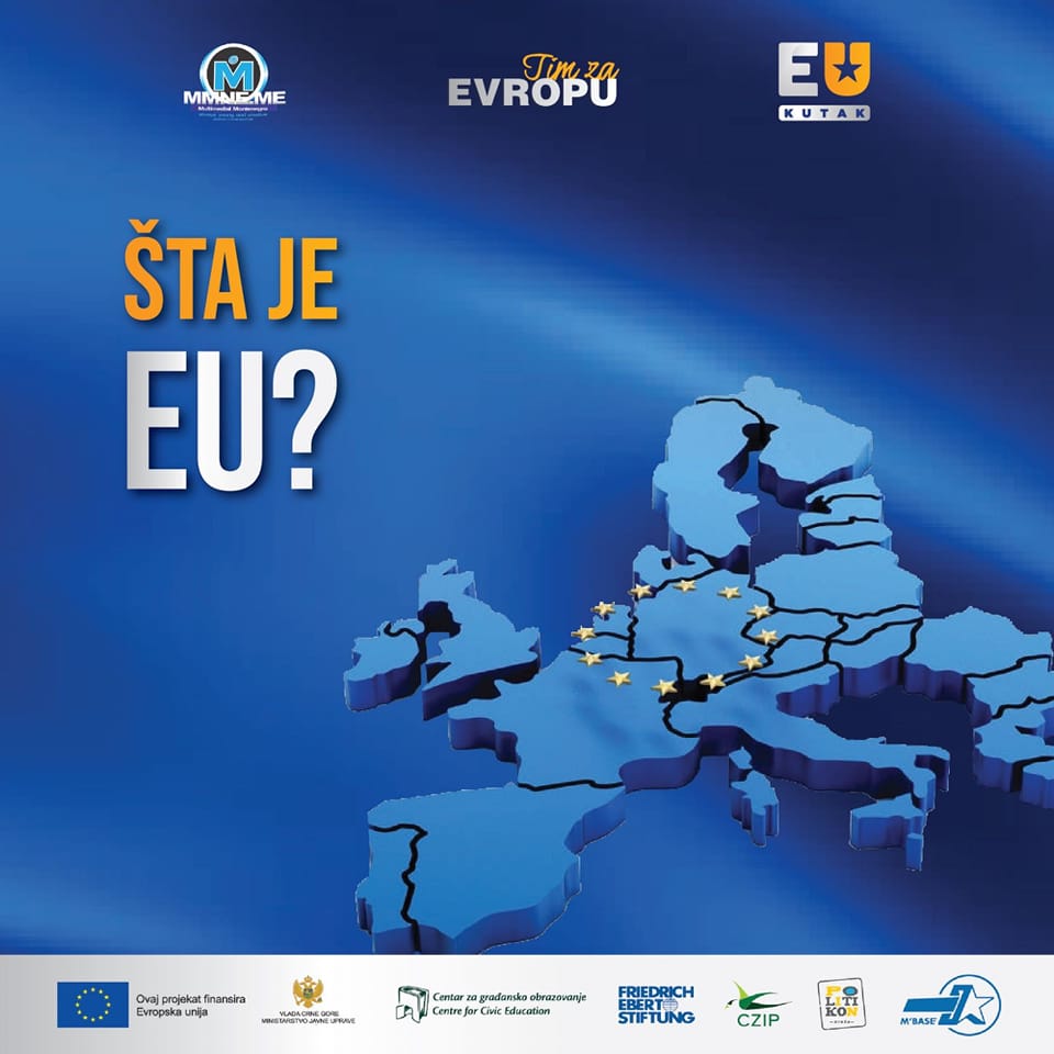 Projekat “EU kutak” podržan je kroz program OCD u Crnoj Gori – od osnovnih usluga do oblikovanja politika M’BASE koji sprovodi Centar za građansko obrazovanje (CGO) u partnerstvu sa njemačkom fondacijom Friedrich Ebert Stiftung (FES), NVO Centar za zaštititu i proučavanje ptica Crne Gore (CZIP) i NVO Politikon mreža, a u saradnji sa Ministarstvom javne uprave i Ministarstvom evropskih poslova.
